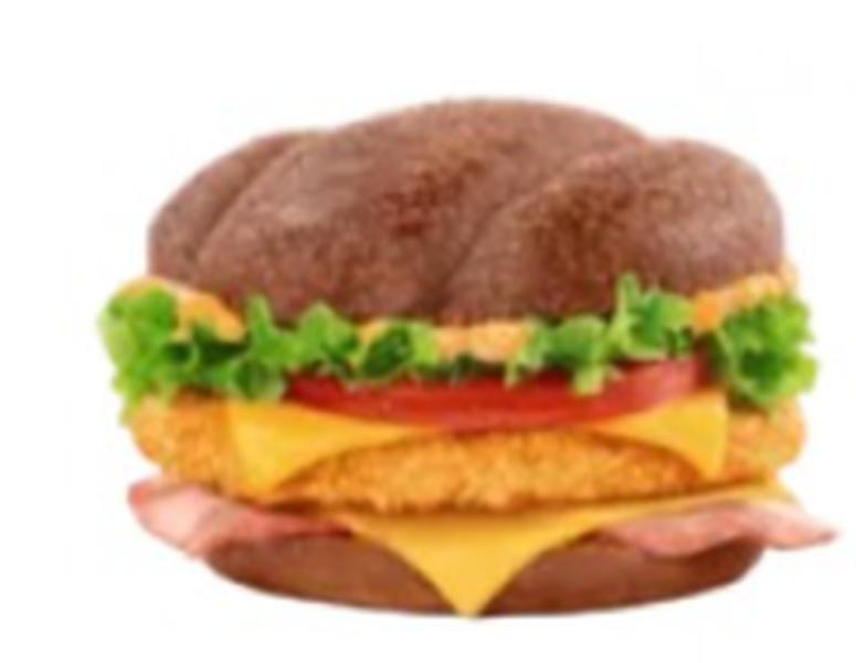 Состав: Бургер с сочной куриной котлетой в хрустящей панировке, ломтиком томата, свежим салатом, нежным сыром, яркой ноткой копченой индейки, уникальным соусом с ароматом малосольных огурчиков, и всё это на горячей, ржаной булочке с глазурью и гречневой посыпкой.