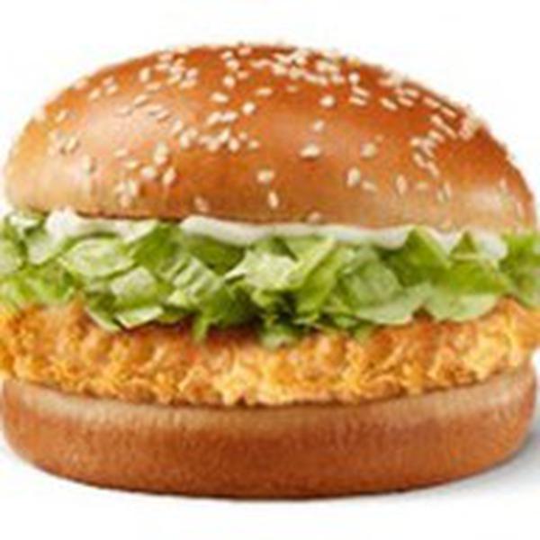 Состав: Сочная куриная котлета в хрустящей панировке, салат Айсберг, специальный соус и карамелизированная булочка с кунжутом