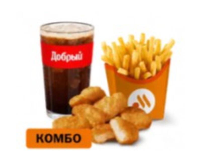 Состав: Большой Комбо состоит из Наггетсов (6 шт.), Картофеля на выбор и Напитка на выбор. Цена Комбо может меняться в зависимости от комплектации