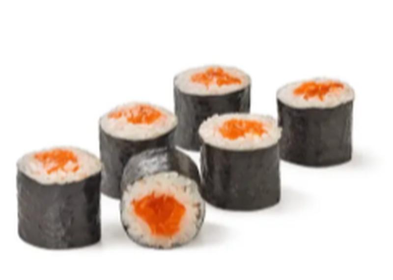 Состав: Рис, нори, лосось. Соевый соус не входит в комплект к блюду